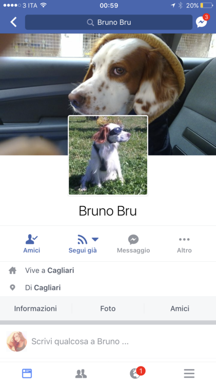 Se volete visitare il suo profilo fb per farvi un'idea della sua adattabilità in appartamento e della sua bellezza: bruno bru