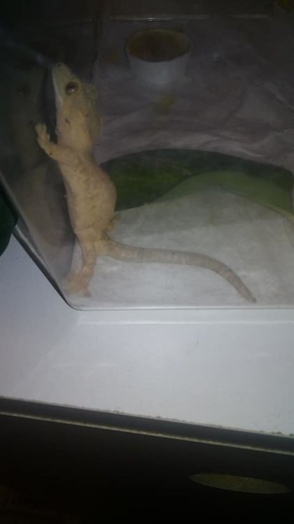 1. Buongiorno a tutti una settimana fa circa ho aquistato un geco ciliatus maschio sub-adulto di circa 6mesi ad una fiera. Ad oggi trascorsa una settimana l animaletto nn mi mangia il vivo e si nutre solo di omogenizzato se imboccato e in pochissime quantità e quasi contro voglia, nn defeca e soprattutto si muove poco questo accade sia di giorno che di notte. Leggendo le varie schede d allevamento dice che che essendo un animale notturno caccia la notte ma a malincuore nn è così. Premetto che oltre questo geco ho 2 pogone a cui somministro regolarmente Calcio e CalcioD3 quindi conosco l importanza di queste 2 vitamine. Ieri è venuto un mio amico che ha 2 gechi e stesso lui mi ha fatto notare la coda (Floppy Tail) e una gobba pronunciata.Vi prego ditemi voi cosa ne pensate se è solo un sospetto infondato di Mom. Grazie tante vi allego foto
