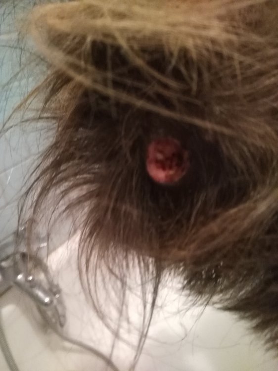 ciao a tutti, Stavo cambiando la gabbietta di Palla la mia cavietta, e ho notato questa strana ferita, non sanguina, e' tonda perfetta non capisco ... Sembra una morsicata o un marchio ma palla e' con me da due anni .... Mi potete aiutare?cosa puo essere?