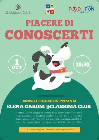 Buongiorno! Vorrei segnalarvi questo evento che si terrà a Milano il 1 Ottobre alle ore 18:30 in zona Navigli presso la struttura Classima Club Milano in Ripa di Porta Ticinese 9. La dottoressa Elena Garoni, medico veterinario comportamentalista, terrà un incontro tutto dedicato al mondo del cane, per comprenderlo a fondo e renderlo davverlo felice.