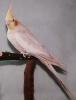 Mutazioni Recessive Per ottenere un pullo che presenti una mutazione recessiva, entrambi i genitori devono avere la mutazione o fenotipicamente (ovvero la si può vedere a occhio nudo, nel piumaggio dell’uccello) o genotipicamente (ovvero è presente nel genoma ma non si manifesta nell’aspetto esteriore, l’individuo è cioè portatore). Le femmine possono essere portatrici di una mutazione recessiva, ma non di una mutazione sesso-legata. Ad esempio, per produrre discendenza Faccia bianca entrambi i genitori devono per lo meno essere portatori Faccia bianca. Se un genitore non contiene geni Faccia bianca (e l’altro invece sì), la discendenza sarà portatrice del gene Faccia bianca ma nessuno dei pulli mostrerà la mutazione esteriormente. Pezzato I pezzati si trovano quando i colori standard del corpo sono sostituiti da giallo o bianco in varie gradazioni. Quando i Pezzati sono giudicati il grado di simmetria e la chiarezza dei segni distintivi sono importanti. Idealmente, un pezzato desiderabile ha una maschera pulita, libera da penne grigie o cannella, coda pulita e un perfetto bilanciamento dei segni distintivi. Un pezzato con penne nere sulla faccia è chiamato Pezzato faccia sporca (Dirty faced Pied). I Pezzati sono conosciuti anche per avere un piumaggio più spesso sul corpo. La mutazione nasce perché i livelli di melanina sono differenti sulle penne degli uccelli. I pezzati appaiono in tre differenti varianti: Il Pezzato chiaro (Light Pied) è quello in cui l’uccello è grigio o cannella e molte aree del corpo sono gialle, o bianche per Pezzati faccia bianca. Il Pezzato scuro (Heavy Pied) è per lo più un uccello giallo o bianco con del grigio o del cannella ancora visibile su petto e schiena. I più belli hanno petto e faccia liberi dai colori più scuri. Molte persone chiamano le calopsitte che mostrano esigui segni grigi o cannella Pezzato a rovescio (Riverse Pied). Il Pezzato pulito (Clear Pied) assomiglia molto al Lutino ma ha occhi e arti scuri o colorati normalmente. Si possono osservare una o due penne scure sulla schiena. Possono essere confusi col Lutino e non sono così comuni. Hanno il vantaggio di non avere la zona implume che è presente nei Lutini. Faccia bianca Colore grigio carbone, mancanza dell’arancione sulle guance e dei pigmenti gialli. La mutazione Faccia bianca presenta la mancanza di tutti i lipocromi. I maschi adulti maturi portano una faccia bianca invece della maschera gialla indossata dalle altre varietà. Alcune tra le più belle combinazioni sono: Perlato Faccia bianca, Perlato Cannella Faccia bianca, Pezzato Faccia Bianca e Pezzato Cannella Faccia bianca. Fallow L’aspetto marroncino (o cannella chiaro) lo fa assomigliare al Cannella, ma con una più pronunciata soffusione gialla e occhi rossi a causa di minor melanina. La calopsitta Fallow, pur assomigliando molto ad una calospitta Cannella, si distingue per l’intensità un po’ diluita del colore. I Fallow hanno occhi rossi, becco e arti rosati. Pastello La mutazione Pastello può essere combinata con ciascuna delle altre mutazioni per ottenere bellissimi risultati. Le calopsitte Pastello appaiono simili alle loro controparti naturali, ma le parti gialle, arancioni, marroni e grigie sono un po’ più addolcite. Di qui il nome, pastello. La più ovvia differenza è il colore delle guance, da arancione a giallo aranciato. Femmina Faccia Pastello Grigio Pastello Oliva Questa mutazione è anche chiamata Smeraldo, Spangle o Giallo soffuso. Questa mutazione è difficile da descrivere e bisogna osservarla. Il termine Smeraldo o Oliva può induce un po’ in errore. Le calopsitte non hanno alcuna pigmentazione verde, cosicché non possono essere realmente verdi. La combinazione di giallo e grigio insieme alla giusta luce fanno apparire questo uccello verde. Può essere meglio descritto come una combinazione di piccole aree con colori differenti che variano dai gialli ai grigi. Diluito recessivo Questa mutazione è una versione grigia diluita o argento del grigio normale. Gli uccelli hanno occhi rossi, becco e arti rosati. I maschi spesso possiedono una faccia giallo carico e guance di un arancione squillante nella maturità. Le femmine mantengono la loro colorazione immatura e le barrature nel sottocoda.